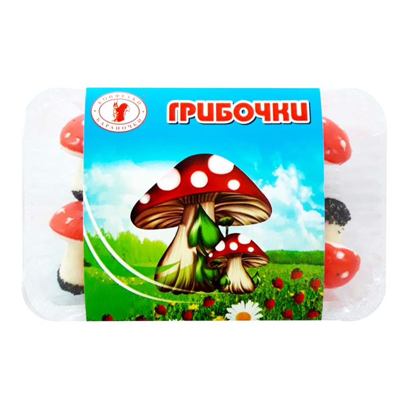Конфеты «Конфетки Бараночки Грибочки Сыроежки» - это вкусный и ароматный подарок для детей и взрослых. Они состоят из натуральных ингредиентов: сахара, молока, масла пальмового, какао, муки пшеничной и других. Вес конфет составляет 180 г амм.
