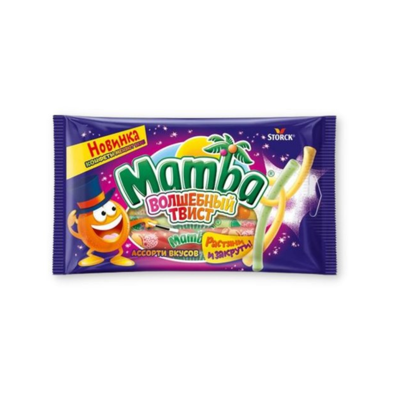 Жевательные конфеты Мамба Волшебный Твист весом 150 г амм содержат натуральные ингредиенты: сахар, молоко, масло пальмовое, какао, пшеничная мука, пшеничный протеин, лактозу, ароматизаторы. Конфеты Мамба Волшебный Твист придадут Вашему детскому празднику неповторимый вкус и аромат. Они прекрасно подойдут для детских праздников, а также для приятного перекуса в любое время дня.