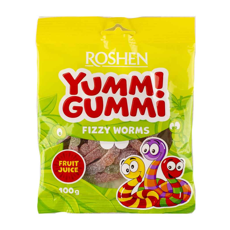 Конфеты Желейное Roshen Yummi Gummi Fizzy Worms 70 г - это вкусные желейные изделия с начинкой из гумми. Они изготовлены из натуральных ингредиентов, включая сахар, молоко, мед, желатин, крахмал и ароматизаторы. Они представляют собой идеальное сочетание вкуса и аромата.