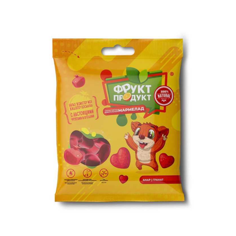 Жевательный гранат Мармелад - это вкусное и ароматное лакомство из натуральных ингредиентов. Он состоит из сахара, глюкозы, консерванта и ароматизатора. Он имеет приятный вкус и аромат граната. Вес одной упаковки составляет 70 г амм.