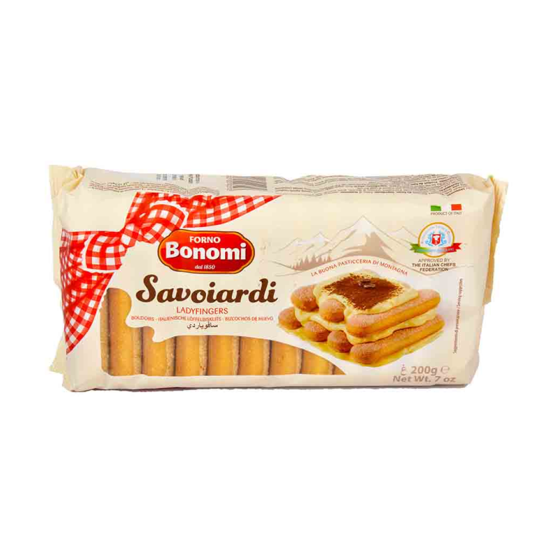 Печенье Bonomi Ladyfingers савоярди - это вкусное и ароматное печенье из итальянской кулинарии. Оно изготовлено из высококачественных ингредиентов, включая муку, сахар, яйца, масло и ваниль. Печенье имеет приятную корочку и привлекательный внешний вид. Оно идеально подходит для приготовления десертов и других блюд.