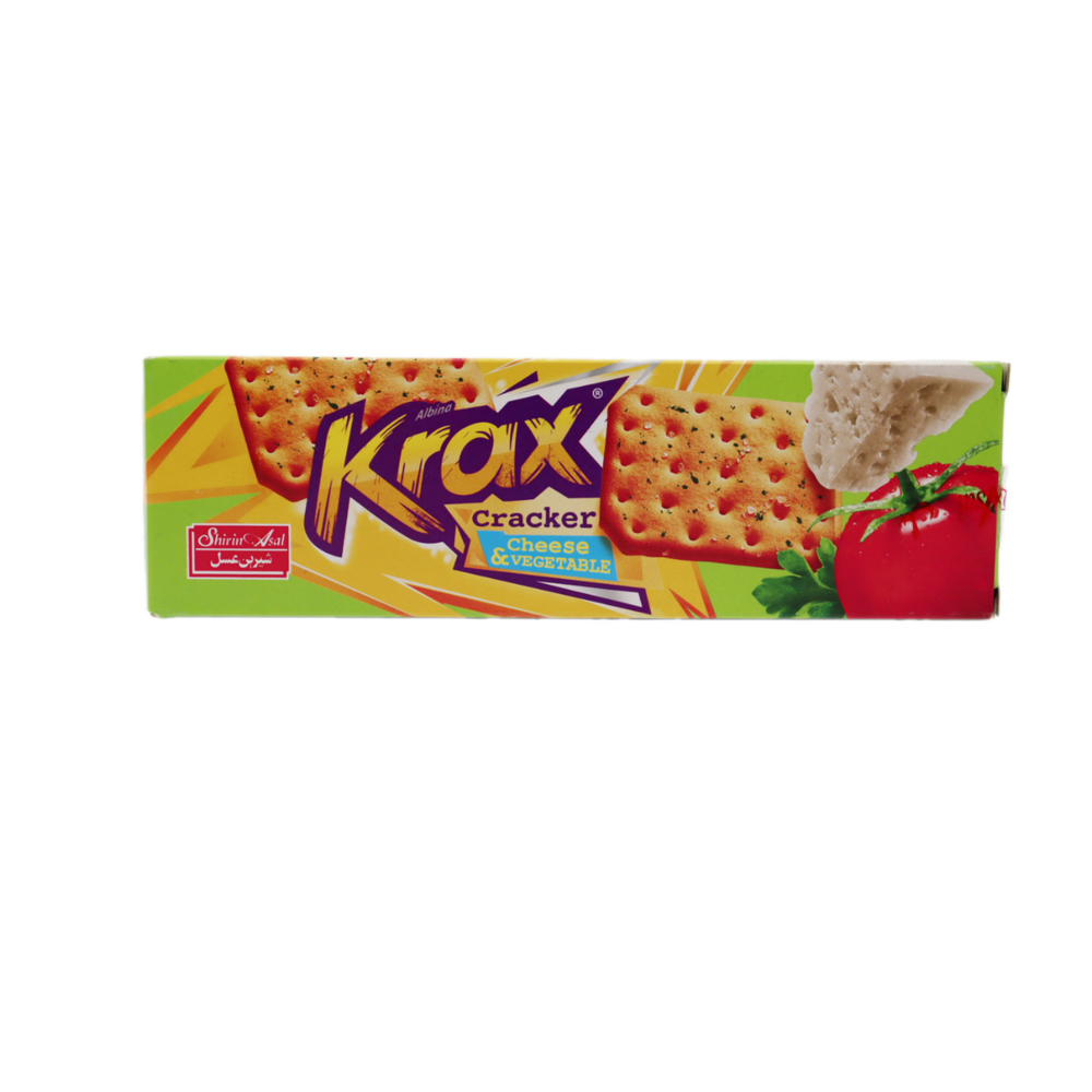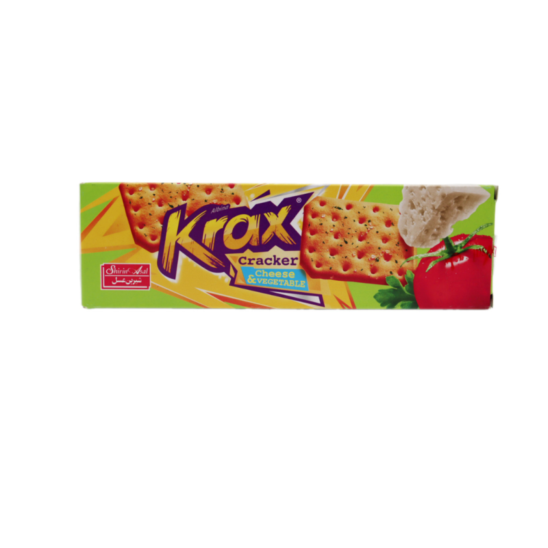 Крекер Krax с вкусом овощей и сыра представляет собой вкусное и полезное блюдо. Он содержит муку пшеницы, масло растительное, сыр пармезан, овощи, соль, сахар, дрожжи и природные ароматизаторы. Крекер Krax прекрасно подходит для завтрака или перекуса в течение дня.