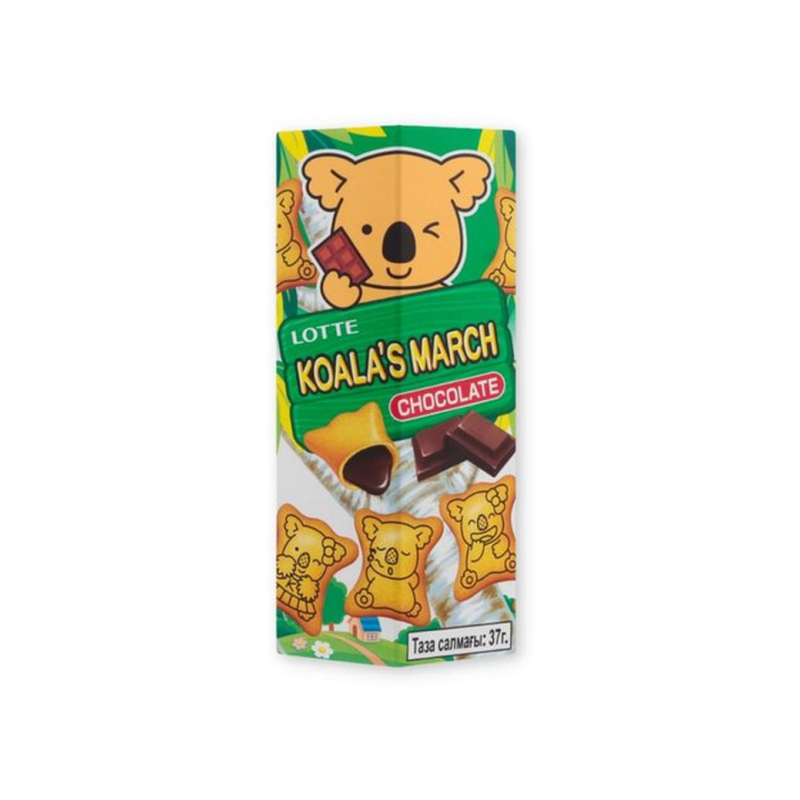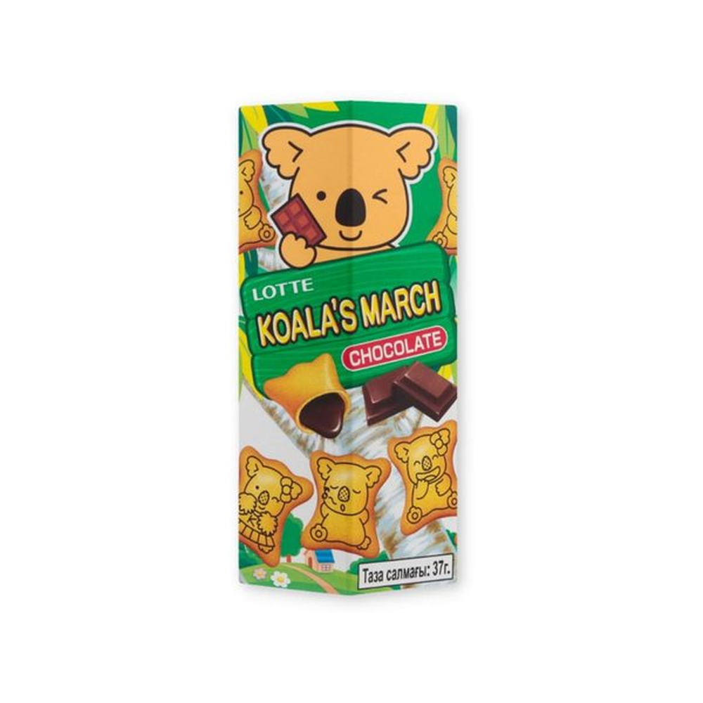Печенье Koalas March Chocolate - вкусное и ароматное печенье с начинкой из шоколада. Состав печенья включает в себя муку, сахар, масло пальмовое, какао-порошок, пищевые добавки и ароматизаторы. Вес одной упаковки составляет 37 г амм.