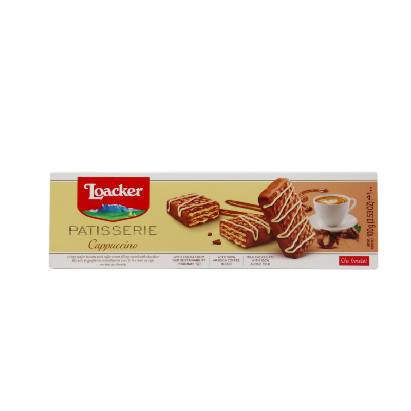 Вафельное печенье Loacker Gran Cappuccino - идеальное сочетание ароматного кофе и вкусного печенья. Состав печенья включает в себя муку пшеницы, масло пальмовое, сахар, кофе и другие ингредиенты. Удобная упаковка по 100 г амм позволяет насладиться вкусом печенья в любое время.