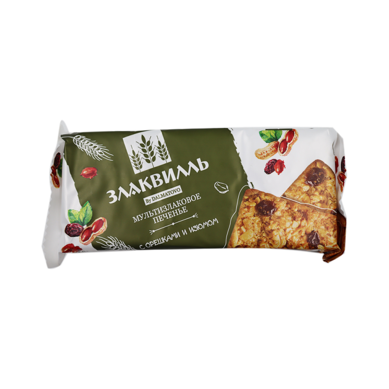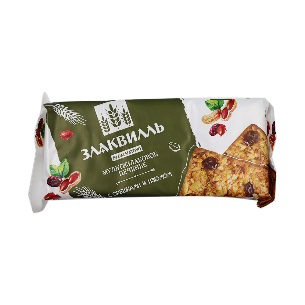 Печенье Злаквиль Мультизлаковое с орешками и изюмом весом 160 г амм - это вкусное и полезное печенье, приготовленное из мультизлаковой муки, орехов, изюма и других натуральных ингредиентов. Оно идеально подходит для завтрака или перекуса в течение дня. Оно богато витаминами и минералами, а также полезными жирами и белками.