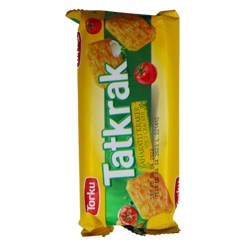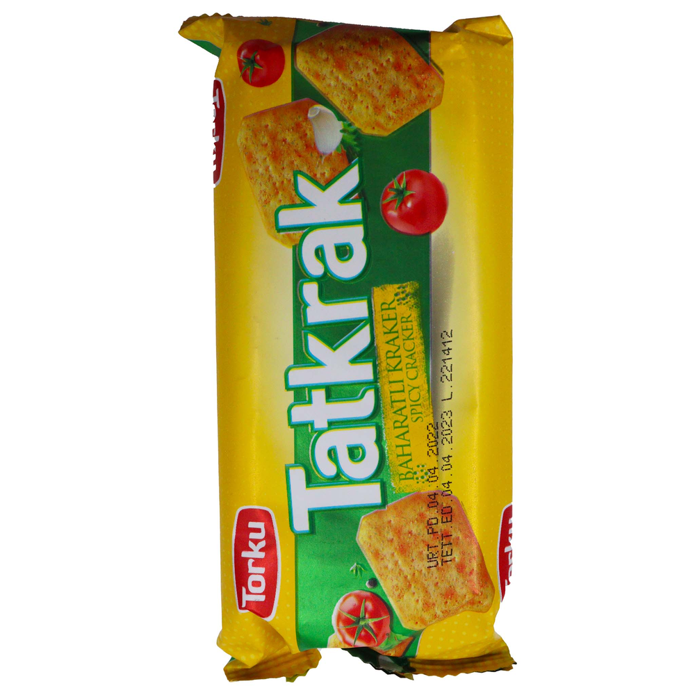 Крекер с вкусом специй Tatkrak – это вкусный и полезный продукт, приготовленный из натуральных ингредиентов. Он содержит муку пшеницы, масло растительное, соль, специи, сахар и другие природные компоненты. Крекер имеет приятный вкус и аромат, а также представлен в удобной упаковке по 100 г амм.