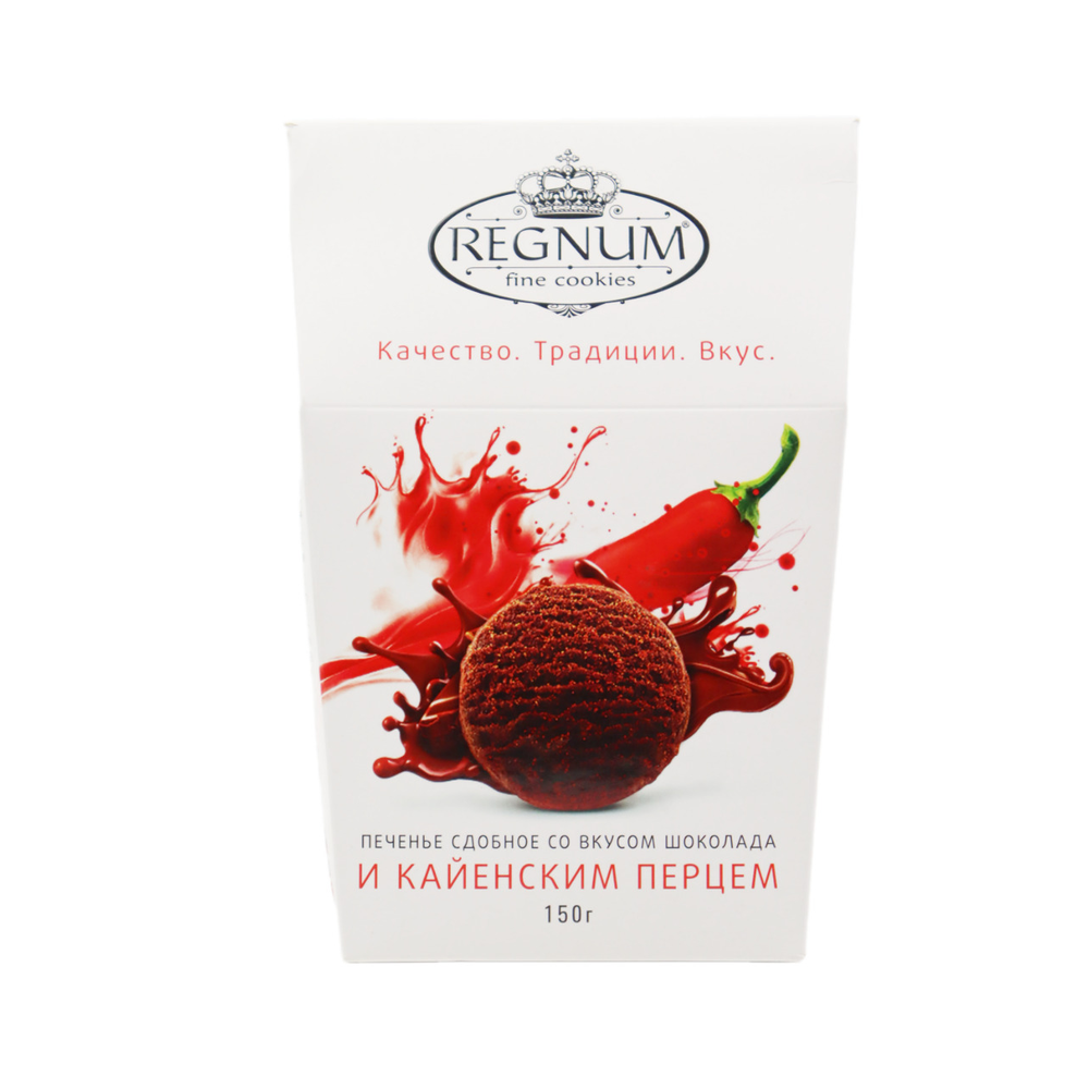 Шоколадное сдобное печенье Regnum с кайенским перцем - это идеальное сочетание сладости и остроты. Каждый кусочек этого уникального печенья пробуждает ваши вкусовые рецепторы и заставляет вас хотеть еще. Попробуйте это печенье вместе с чашкой горячего кофе для идеального утреннего завтрака или подавайте его в качестве десерта к чаю. Не упустите возможность попробовать это удивительное сочетание вкусов - добавьте печенье Regnum в свою корзину прямо сейчас!