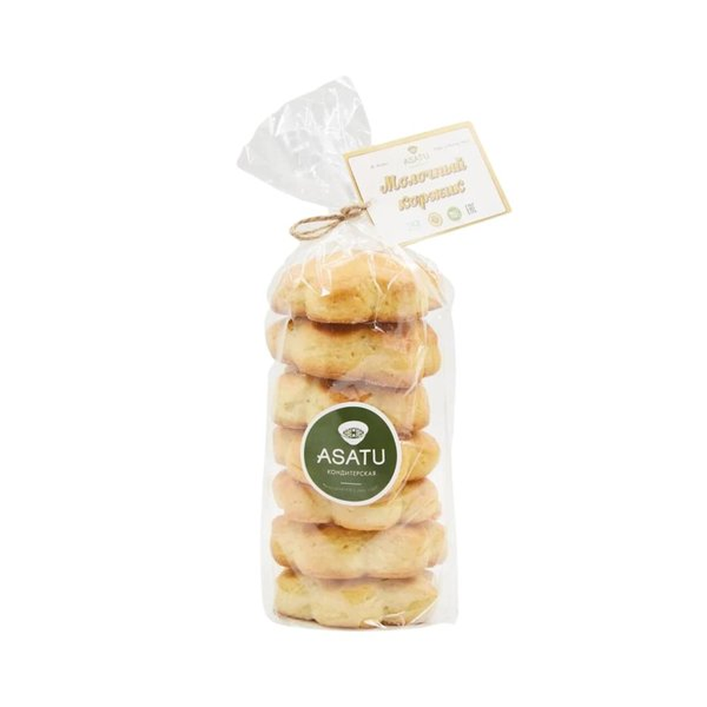 Коржик Молочный Асату - это вкусный и ароматный печенье с молочным вкусом. Он изготовлен из высококачественных ингредиентов, включая муку, сахар, яйца, масло и молочные продукты. Вес одной упаковки составляет 450 г амм.
