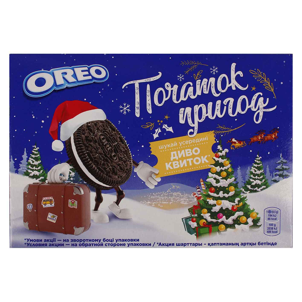 Печенье Oreo с ванильным кремом и какао-начинкой вкусное и ароматное. Состав печенья включает в себя пшеничную муку, сахар, масло растительное, какао-начинку и ванильный крем. Вес печенья составляет 228 г амм.