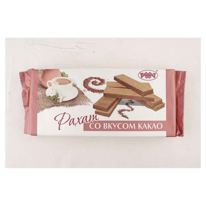Вафли Рахат с вкусом какао – это вкусный и ароматный продукт для приятного перекуса. Они приготовлены из натуральных ингредиентов, включая муку, сахар, масло пальмовое, какао и соль. Вафли Рахат имеют приятный вкус и аромат какао, а также представлены в удобной упаковке по 400 г амм.