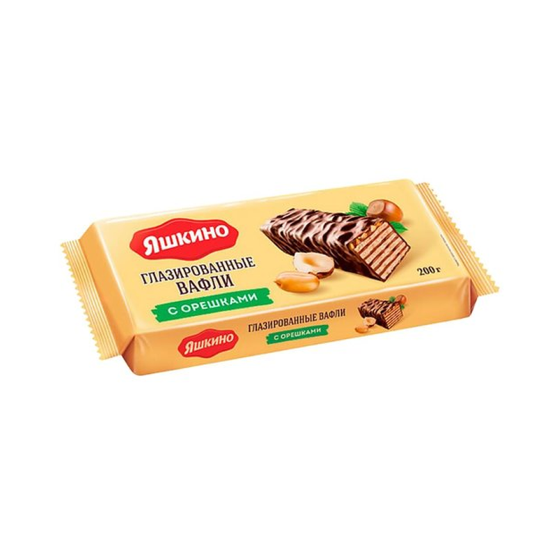 Вафли Яшкино глазир с орешками – вкусный и ароматный десерт для любителей сладкого. Они приготовлены из высококачественного хлеба и начинки из орехов. Состав продукта включает в себя муку, сахар, масло, орехи, яйца, молоко и другие ингредиенты.