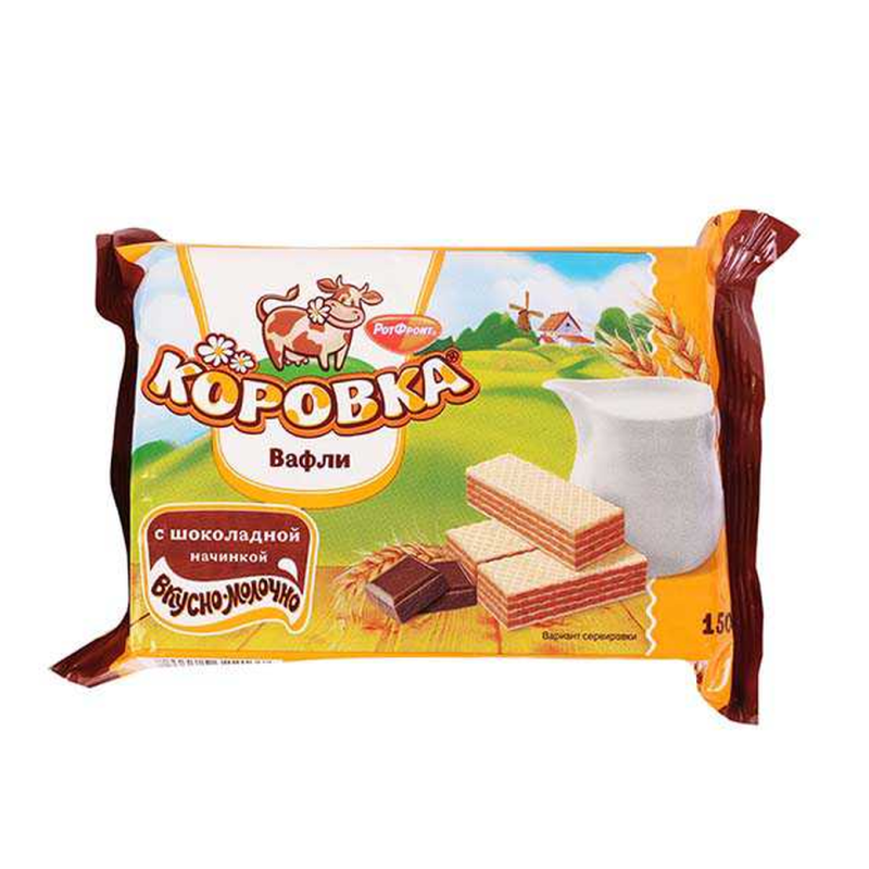 Вафли Коровка с начинкой из шоколада весом 150 г амм - идеальное сочетание для любителей сладкого. Они приготовлены из высококачественного хлеба и начинки из шоколада. Состав продукта включает в себя муку, сахар, масло, яйца, шоколад, природные ароматизаторы и другие ингредиенты.