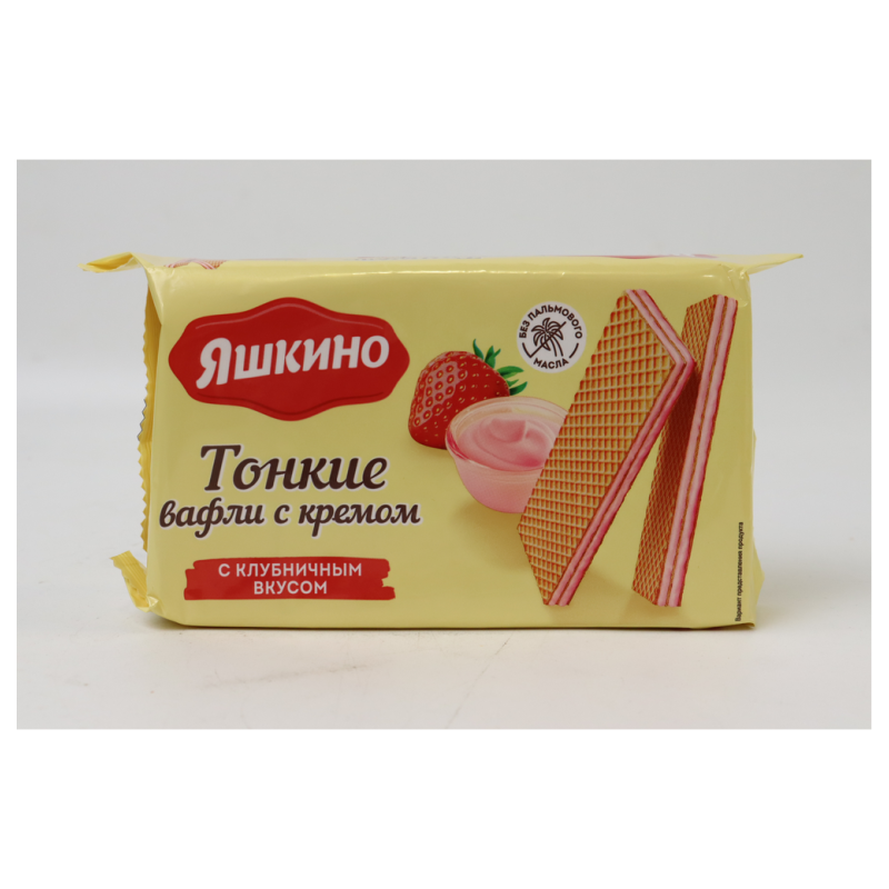1. Вафли Тонкие Яшкино - это вкусные и нежные вафли с клубничным кремом. 2. Они изготовлены из высококачественного пшеничного теста и начинки из клубники. 3. Вафли Тонкие Яшкино имеют приятный аромат и вкус клубники. 4. Они идеально подходят для приготовления десертов и перекусов. 5. В каждой упаковке Вафли Тонкие Яшкино содержится 144 г амма продукта.