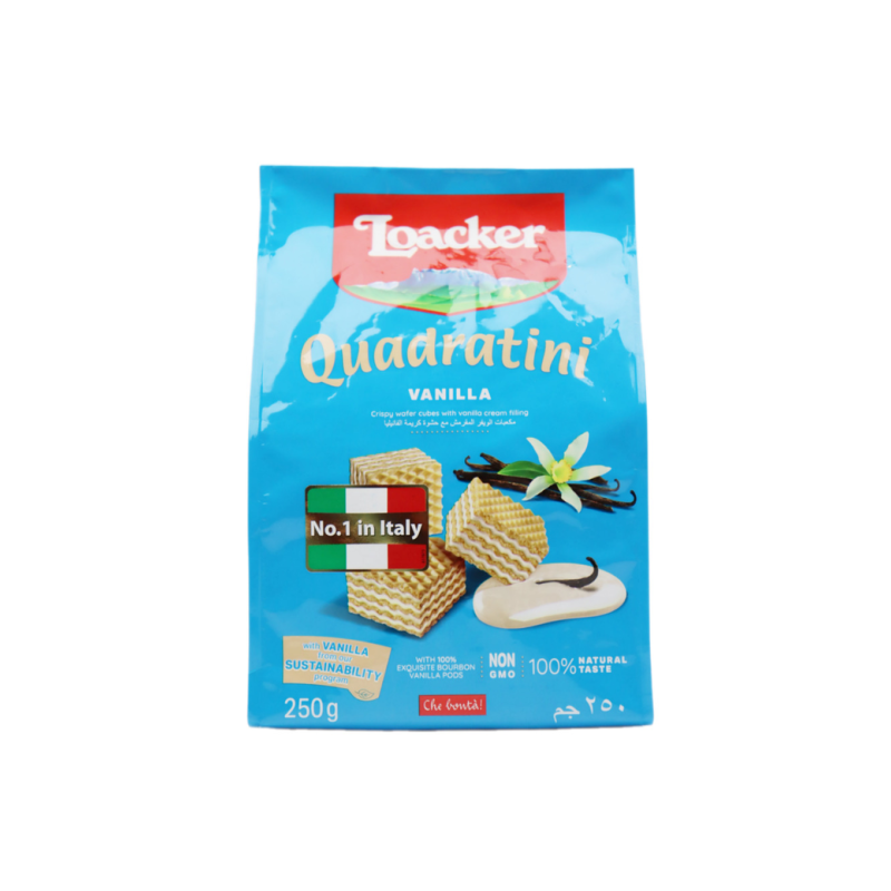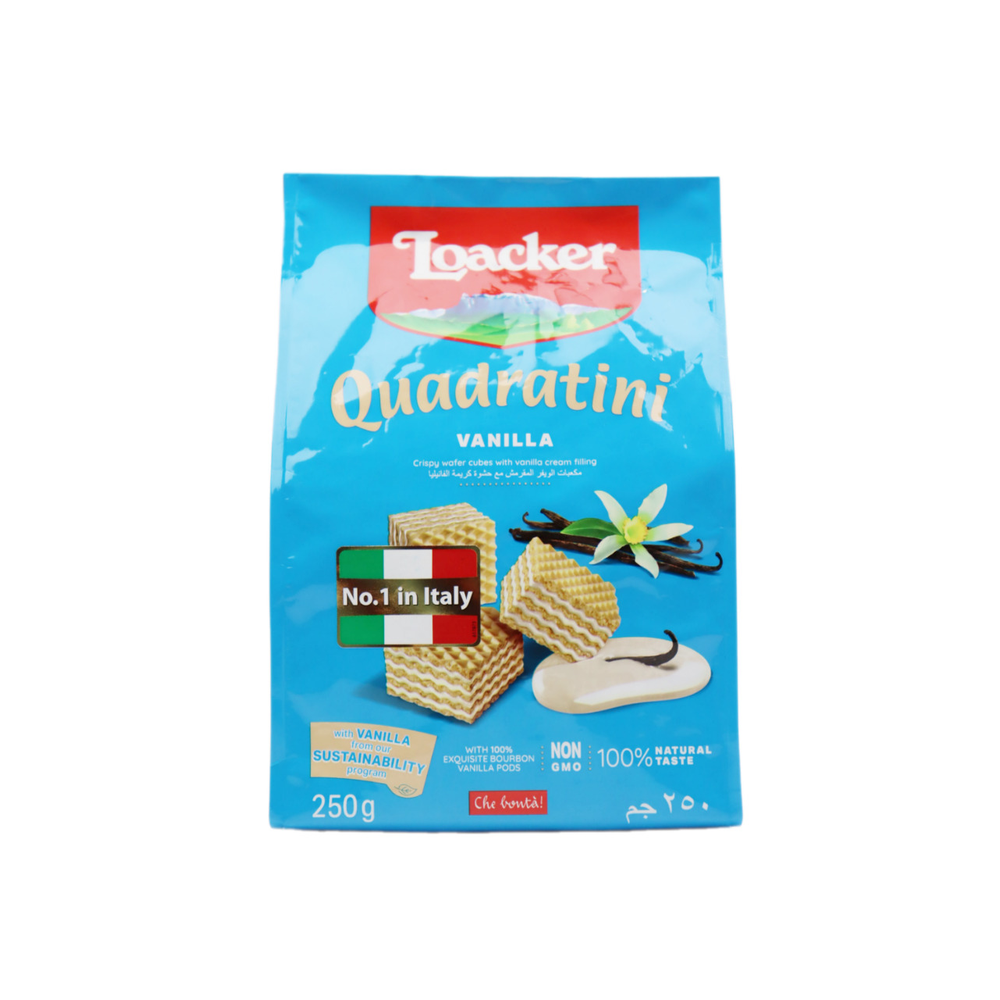Кубики Вафельные Loacker Quadratini Vanille - это вкусные вафли с начинкой из ванильного крема. Они изготовлены из натуральных ингредиентов без добавления артифициальных красителей и консервантов. В состав входят мука пшеницы, сахар, масло растительное, ванильный ароматизатор, молоко сухое, соль и другие ингредиенты.