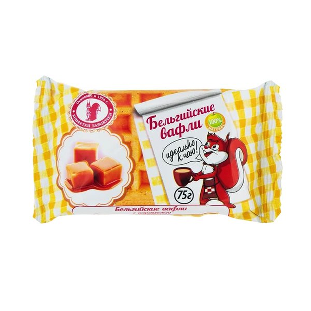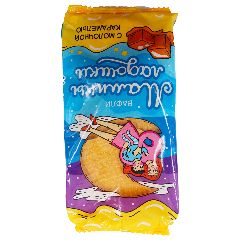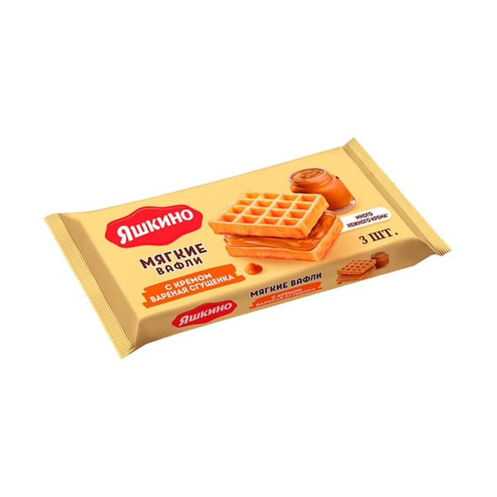 Мягкие вафли с вареной сгущенкой – это вкусный и ароматный десерт, который приготовлен из натуральных ингредиентов. В состав входят мука, сахар, сливочное масло, вареная сгущенка и другие природные компоненты. Вафли имеют приятную консистенцию и весят 40 г амм.