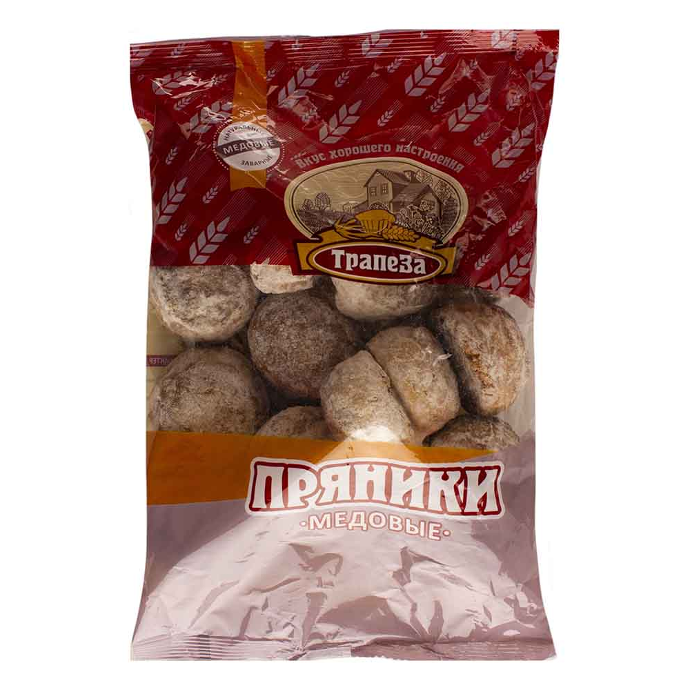 Медовые пряники «Трапеза» в упаковке весом 350 г амм - это ароматные и нежные лакомства, которые прекрасно подойдут для чаепития или просто в качестве сладкого угощения. Пряники обладают насыщенным медовым вкусом и ароматом пряных специй, что делает их идеальным дополнением к вашему десерту или вечернему чаю. Удобная упаковка обеспечивает долгое сохранение свежести и аромата пряников, что позволяет вам наслаждаться их великолепным вкусом в любое время.