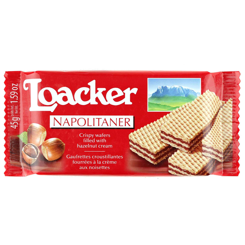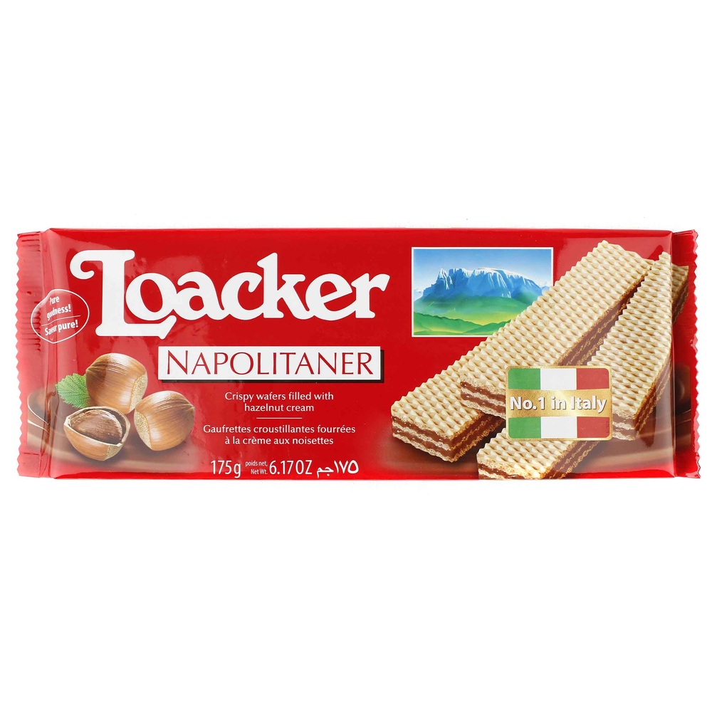Вафли Loacker Classic Napolitaner - идеальное сочетание нежного вафельного бисквита и начинки из мягкого крема из марципана. Состав включает в себя муку пшеничную, сахар, масло растительное, марципан, молоко сухое, ванильный ароматизатор, соль, пищевые добавки. Вкусные вафли Loacker Classic Napolitaner представлены в удобной упаковке весом 175 г