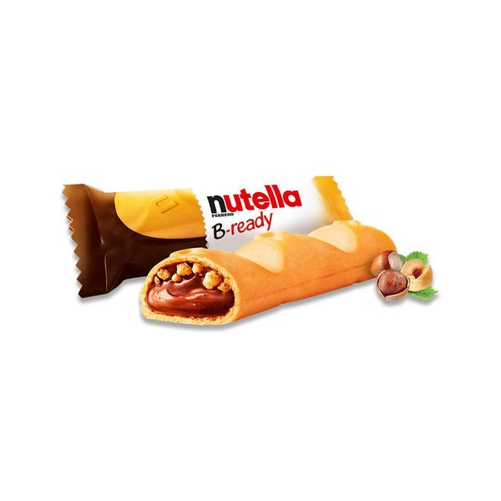 Вафельный батончик Nutella B-Ready – идеальное сочетание вкуса и приятной текстуры. Он состоит из двух вафельных печенек, заполненных начинкой из популярного во всем мире варенья Nutella. В состав батончика входят пшеничная мука, масло пальмовое, сахар, какао, молочные продукты, яйцо и другие ингредиенты.