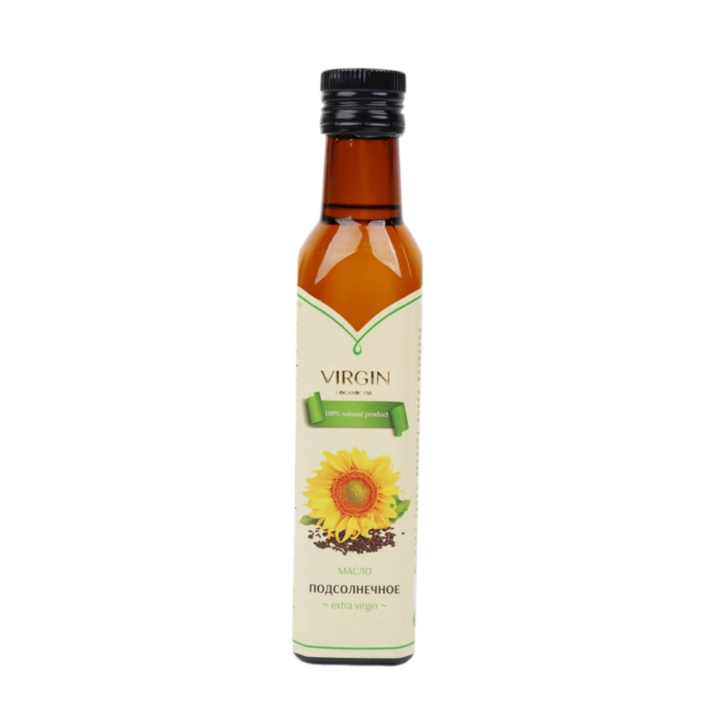 Масло подсолнечное Virgin Organic Oil в упаковке объемом 250 г амм - это натуральное масло, полученное из отборных семян подсолнечника методом первого холодного отжима. Благодаря отсутствию процесса рафинирования, оно сохраняет все свои полезные свойства, включая высокое содержание витаминов и жирных кислот. Это масло идеально подходит для использования в кулинарии, для жарки, запекания и приготовления соусов, придавая блюдам нежный вкус и аромат.