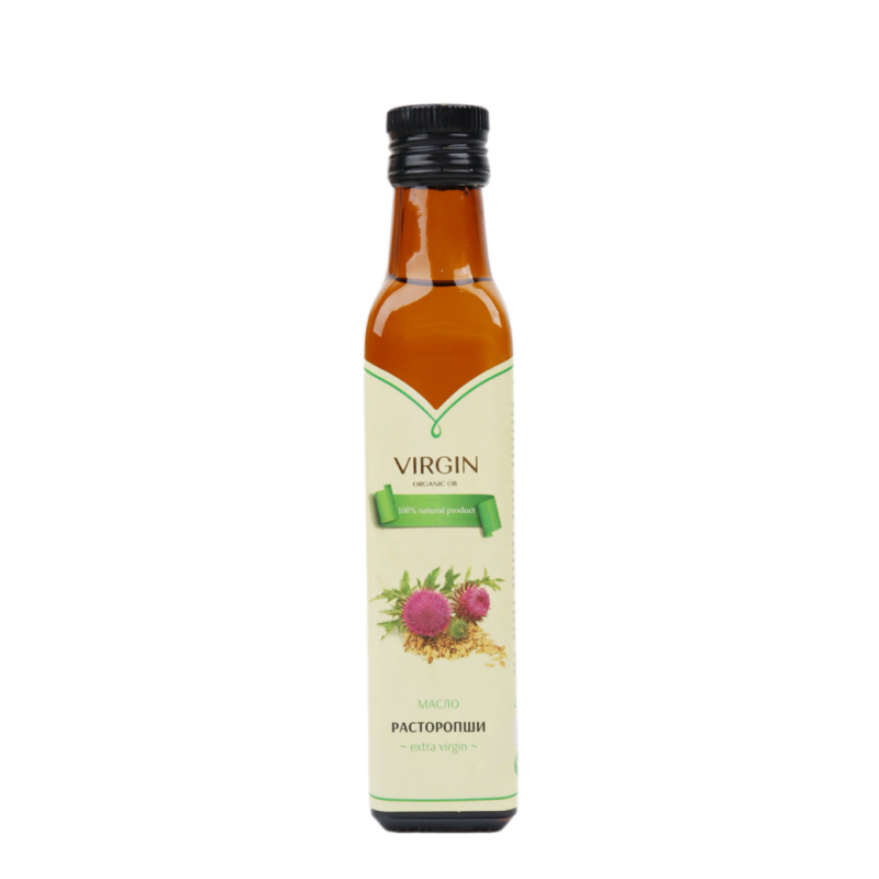Масло расторопши Virgin Organic Oil в упаковке объемом 250 г амм - это натуральное масло, полученное из отборных семян расторопши методом первого холодного отжима. Благодаря отсутствию процесса рафинирования, оно сохраняет все свои полезные свойства, включая высокое содержание витаминов, минералов и жирных кислот. Это масло часто используется в косметических целях для ухода за кожей и волосами, а также может быть добавлено в пищу для придания блюдам более насыщенного вкуса и аромата.