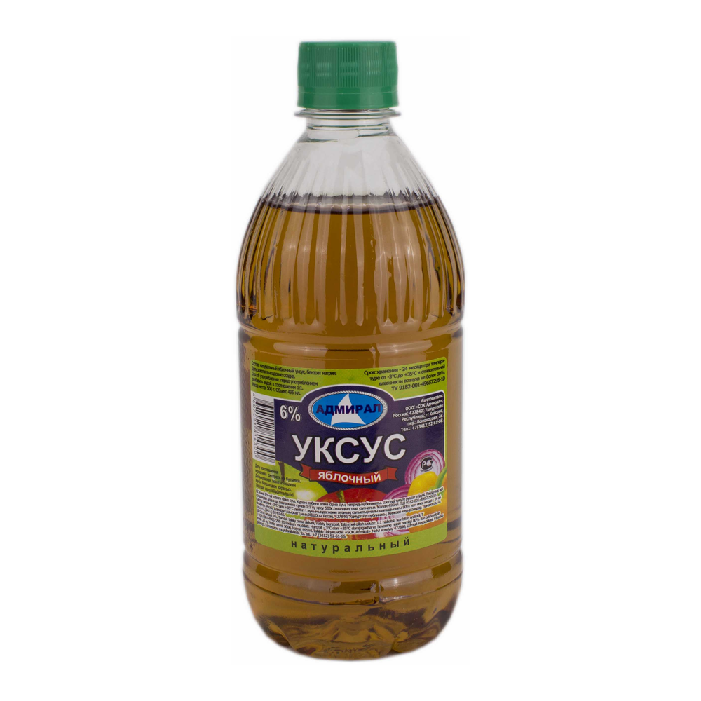 Уксус яблочный 6% Адмирал - это продукт, который обладает мягким кислым вкусом и приятным ароматом яблок. Он часто используется в кулинарии для маринадов, заправок для салатов, консервирования овощей и фруктов, а также для приготовления соусов и желе. Уксус яблочный добавляет блюдам особый вкус и аромат, делая их более привлекательными. Этот продукт поставляется в стеклянной или пластиковой бутылке весом 500 г амм.
