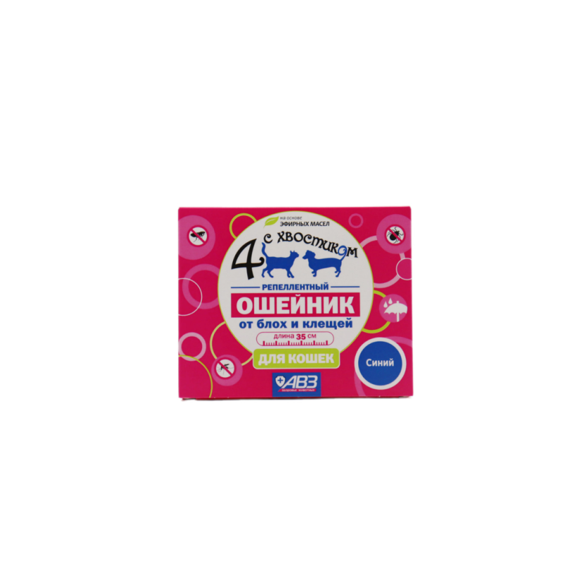 Ошейник «Четыре с хвостиком» с репеллентом, синего цвета и длиной 35 см, вероятно, специально разработан для защиты кошек от насекомых и других вредителей. Репеллентный эффект помогает отпугивать комаров, блох и клещей, предотвращая их нападение на питомца. Синий цвет может быть выбран из эстетических соображений или для обеспечения лучшей видимости животного на улице.