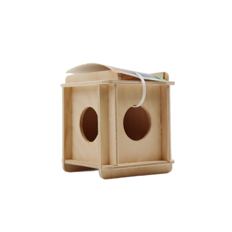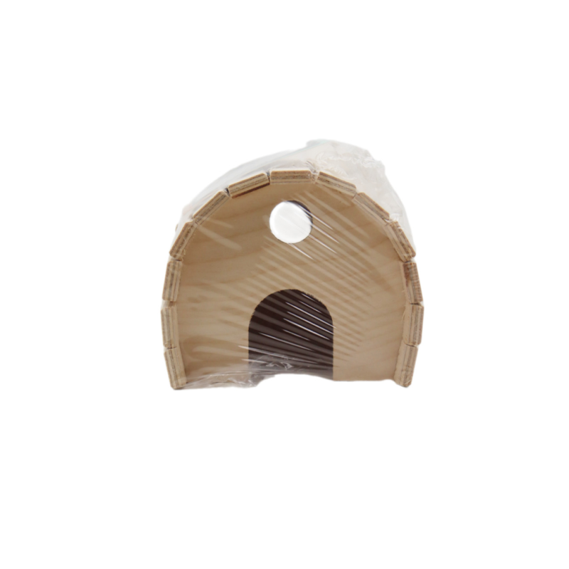 Деревянный домик цилиндрической формы для мелких грызунов: крыс, мышей, джунгариков, хомячков, песчанок и т. д. Несколько отверстий, в том числе большой вход и окошко, обеспечивают свободный доступ внутрь изделия. Крыша домика достаточно плотная - по ней зверек может забираться наверх. Эта модель прослужит грызуну очень долго, т. к. изготовлена из высококачественных материалов. В домике можно не только отдохнуть или подвигаться, но и поточить об него свои зубки. Изделие выполнено из фанеры высшего качества без окрашивания, поэтому его легко можно раскрасить или декорировать на свой вкус. Габаритные размеры конструкции 15х11,5х10 см отлично подходят для клеток средних размеров.