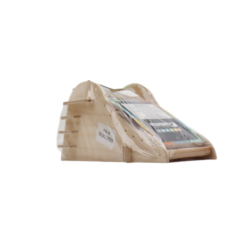Деревянный домик-горка для мелких грызунов: крыс, мышей, джунгариков, хомячков, песчанок и т. д. По ассиметричной лестнице зверек может легко забираться наверх и спускаться вниз, а небольшие торцевые окошки являются дополнительными элементами для игры. Эта модель прослужит грызуну очень долго, т. к. изготовлена из высококачественных материалов. С такой лестницей можно не только подвигаться, но и поточить об нее свои зубки. Изделие выполнено без окрашивания, поэтому его легко можно раскрасить или декорировать на свой вкус. Габаритные размеры конструкции 21х10,5х10,5 см отлично подходят для клеток небольших размеров.