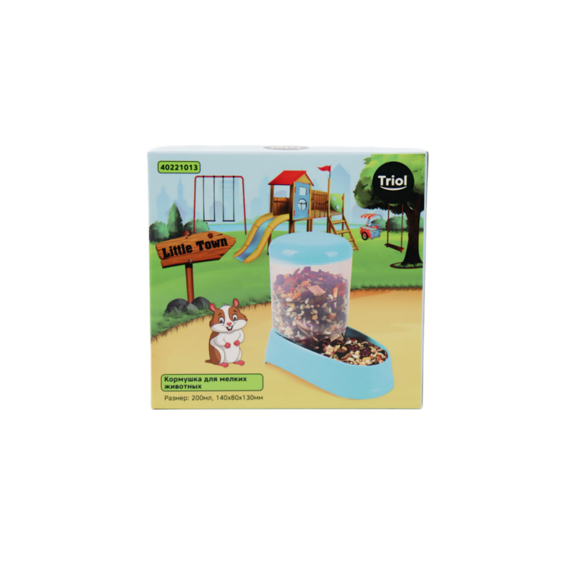 Кормушка для мелких животных Little Town - это незаменимый аксессуар для маленьких питомцев во время осутствия хозяина. Максимально удобная конструкция позволяет засыпать корм сверху, сняв крышку, а по мере поглощения еды, кормушка будет автоматически наполняться, и значит ваш любимец не останется голодным. Кормушка выполнена из прочного и нетоксичного пластика, а потому – совершенно безвредна для животных. Цвет: голубой. Размер: d80, высота 130мм. Объем: 200 мл