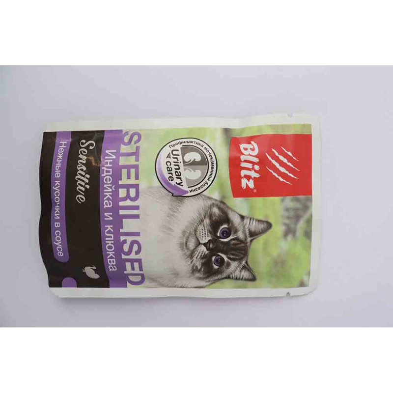 Корм Blitz Конс. Д/стер/кошек кролик/индейка в соусе 85 г - это высококачественный корм для стерилизованных кошек, содержащий мясо кролика и индейки в соусе. Состав корма включает в себя мясо кролика (30%), мясо индейки (30%), вода, крахмал, желатин, минеральные вещества и витамины. Этот корм обеспечивает кошку необходимыми питательными веществами, поддерживает ее здоровье и иммунную систему. Он также помогает контролировать вес и предотвращает образование мочевых камней. Корм Blitz Конс. Д/стер/кошек кролик/индейка в соусе 85 г - это идеальный выбор для стерилизованных кошек, которые требуют особого питания для поддержания оптимального здоровья.
