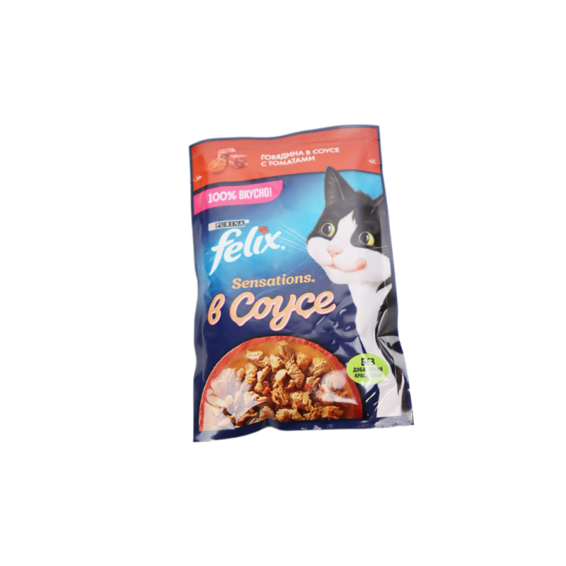 Корм для кошек Felix Sensations в соусе с говядиной и томатом, упаковка 75 г амм, представляет собой изысканное и питательное блюдо, которое порадует вашего питомца. Сочное мясо говядины в сочетании с ароматным томатным соусом создает неповторимый вкус, который будет любим вашей кошкой. Этот корм идеально подходит для ежедневного кормления, обеспечивая вашего питомца всеми необходимыми питательными веществами для здоровья и активности.