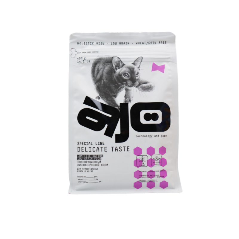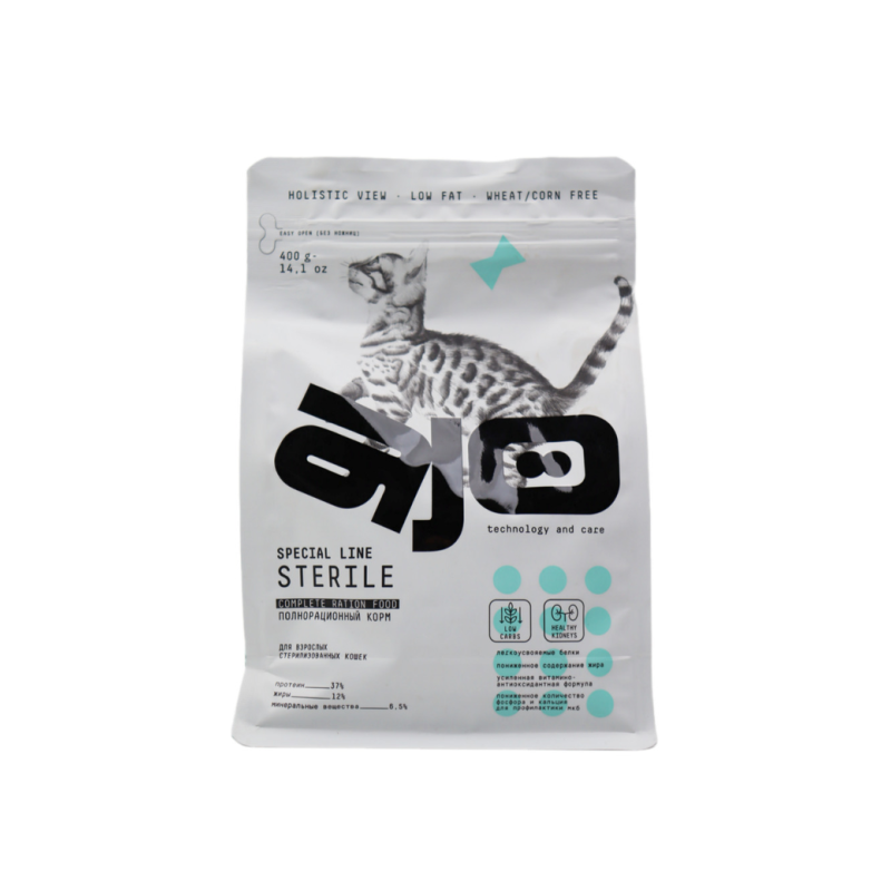 Корм для активных и стерилизованных кошек Ajo - идеальное питание для вашего питомца! Сбалансированный состав обеспечивает необходимое количество питательных веществ для здоровья и энергии вашего пушистого друга. Легко усваивается и подходит как для активных, так и для стерилизованных кошек. Попробуйте добавить корм Ajo в рацион вашего питомца и убедитесь в его высоком качестве и вкусе. Рекомендуемая порция - 50 г в день. Попробуйте смешать с небольшим количеством воды для создания сочного соуса - ваша кошка будет в восторге!