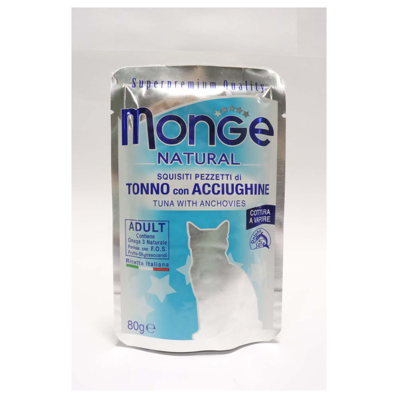 Лакомство Monge Кусочки Для Кошек Тунец/Лосось в Желе 80 г - это изысканное угощение, которое сочетает в себе нежный вкус тунца и лосося. Эти натуральные кусочки обогащены важными питательными веществами, которые позитивно влияют на здоровье вашей кошки. Желе добавляет влажности и аппетитности этому лакомству, сделав его незабываемым удовольствием для вашего питомца. Состав: тунец, лосось, желе.