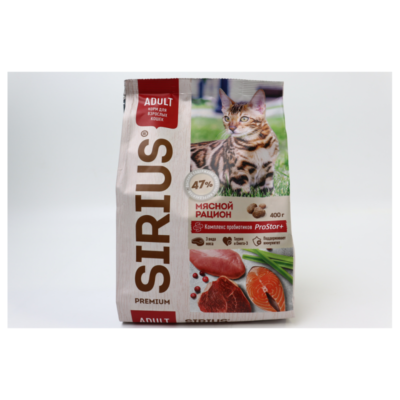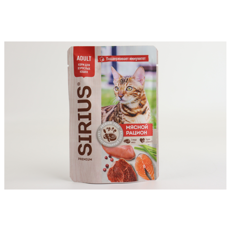 Покормите своего пушистого друга вкусным и питательным консервированным кормом Sirius «Мясной рацион» для кошек. Каждая порция содержит 85 г аммов нежного мяса, которое обязательно понравится вашему питомцу. Этот корм идеально подходит для ежедневного питания вашего кота или кошки, обеспечивая им необходимые питательные вещества для здоровья и активности. Попробуйте подавать корм как основное блюдо или в качестве дополнения к сухому корму для разнообразия в рационе вашего питомца. Позвольте вашей кошке или коту насладиться вкусом Sirius «Мясной рацион» уже сегодня!