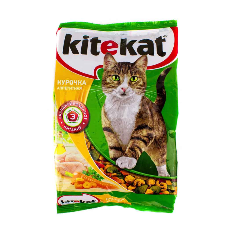 Вкусный и питательный обед! Еще больше сил и энергии - это то, что нужно настоящим исследователям! Ведь Kitekat - это полноценная еда, которая содержит все необходимое для вашей кошки. Kitekat приготовлен из таких же качественных продуктов, что вы используете дома для своих близких: мясных ингредиентов, овощей, растительного масла и круп. Kitekat знает, как их правильно сбалансировать для поддержания энергии и здоровья вашего кота. В миску следует насыпать сразу всю дневную норму, поскольку кошка сама знает, когда и сколько ей есть. Как правило, кошки едят 2-3 раза в день, а беременные и кормящие - 3-4 раза. Рядом с едой всегда должна стоять миска с чистой водой. Следите за тем, чтобы еда всегда была свежей и не залеживалась в миске по несколько дней. Рекомендуемая дневная норма потребления: - Кошки 2 кг - 39 г - Кошки 3 кг - 52 г - Кошки 4 кг - 63 г - Кошки 5 кг - 74 г Состав: злаки и продукты их переработки, мука животного происхождения (в том числе мука из птицы), продукты животного про