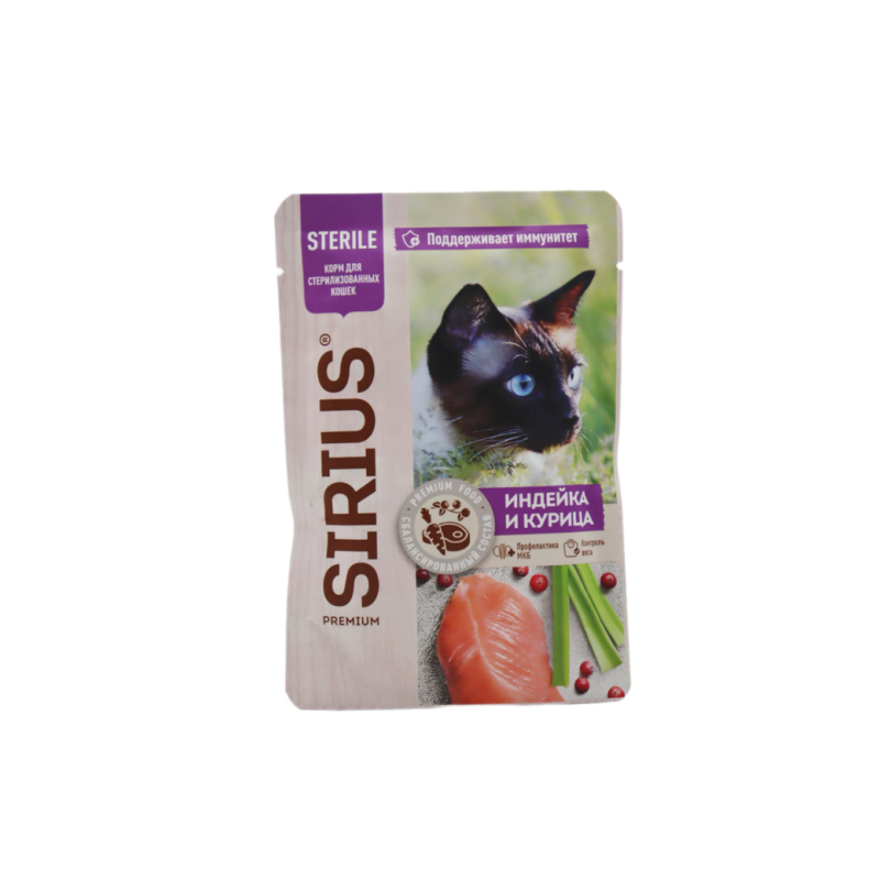 Нежное консервированное кормление для вашей кошки от Sirius - индейка и курица в удобной упаковке по 85 г амм. Полезное и сбалансированное питание, которое обеспечит вашего питомца всем необходимым для здоровья и активности. Идеально подходит для стерилизованных кошек. Попробуйте подавать корм как основное блюдо или как дополнение к сухому корму. Ваша кошка будет в восторге от нежного мясного вкуса индейки и курицы. Порадуйте своего питомца качественным и вкусным кормом Sirius уже сегодня!