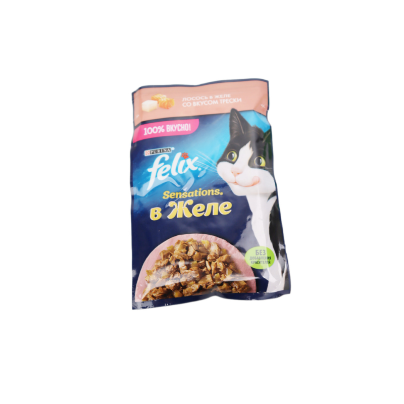 Корм для кошек Felix Sensations в желе с лососем и треской, упаковка 75 г амм, представляет собой изысканное блюдо, которое понравится вашему питомцу своим вкусом и питательными свойствами. Натуральный лосось и треска обеспечивают вашу кошку не только вкусом морской свежести, но и ценными жирными кислотами, полезными для здоровья ее кожи и шерсти. Этот корм в желе идеально подходит для ежедневного кормления вашего питомца, обеспечивая ему все необходимые питательные вещества.