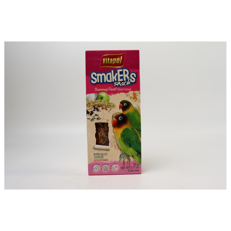 Лакомство для неразлучников Vitapol Smakers с фруктами - это угощение, которое обычно содержит смесь разнообразных фруктов, таких как яблоки, груши, бананы, и другие, приправленных для создания привлекательного вкуса и аромата для ваших неразлучников. Это угощение может быть использовано в качестве разнообразной дополнительной пищи или как награда за хорошее поведение. Важно обеспечить, чтобы лакомство было безопасным и подходило для питания ваших неразлучников, а также включать его в их рацион с учетом общего питательного баланса. Перед введением новых продуктов в рацион ваших неразлучников всегда лучше проконсультироваться с ветеринаром.