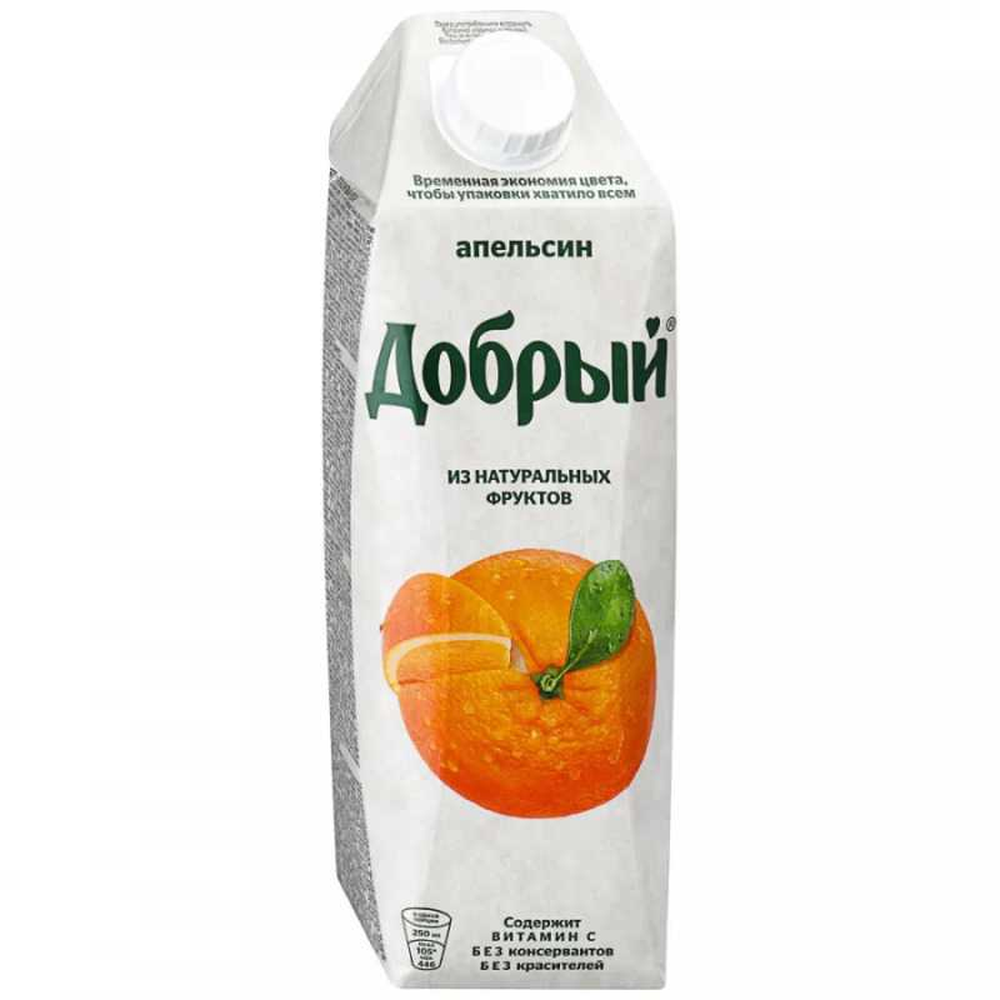 Сок Добрый Апельсин объемом 1 л итр — это прекрасный способ насладиться натуральным вкусом сочных апельсинов. Богатый витамином C напиток подарит вам заряд энергии и поднимет настроение. Наслаждайтесь свежестью и натуральным вкусом сока Добрый Апельсин в любое время дня!