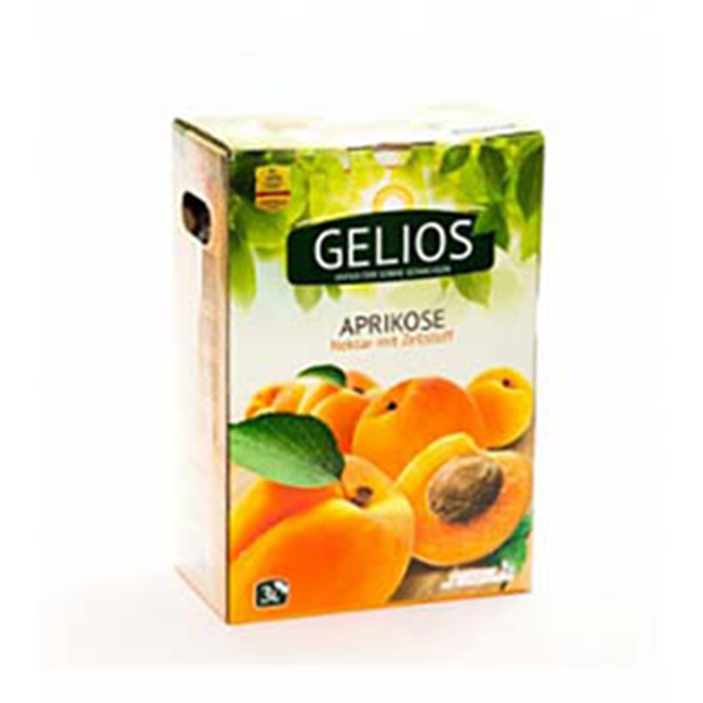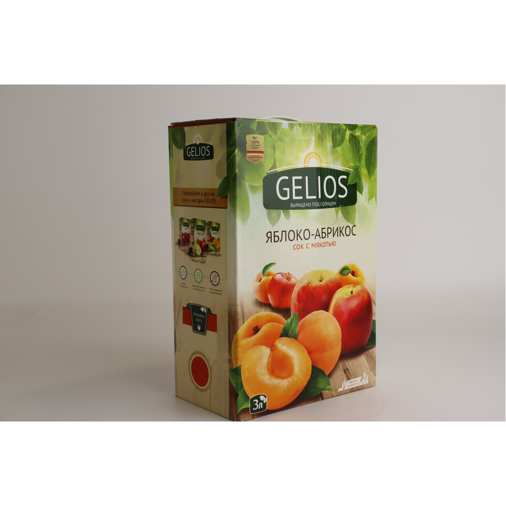 Сок Gelios из яблок и абрикосов, прямого отжима, в упаковке типа «бэг-ин-бокс» объемом 3 л итра - это натуральный и освежающий напиток, который сохраняет все полезные свойства фруктов. Упаковка «бэг-ин-бокс» обеспечивает удобство использования и долгосрочное хранение сока, сохраняя его свежесть и вкус.