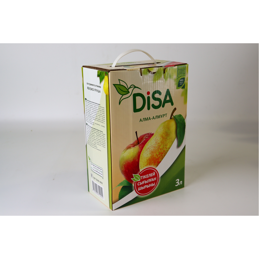 Сок Disa Яблоко/Груша в упаковке объемом 3 л итра - это освежающий и вкусный напиток, который сочетает в себе сладость яблок и аромат груши. Его натуральный вкус и аромат делают его отличным выбором для утоления жажды в течение дня. Упаковка в объеме 3 л итра идеально подходит для семейного потребления или использования на мероприятиях.