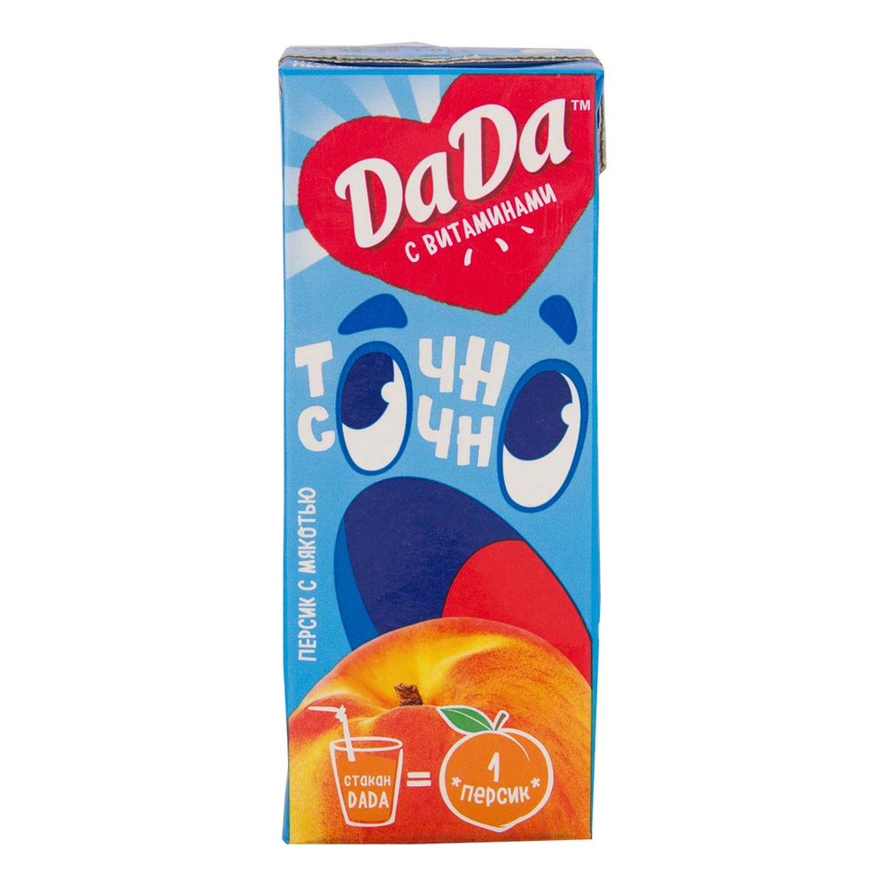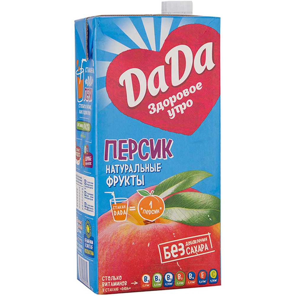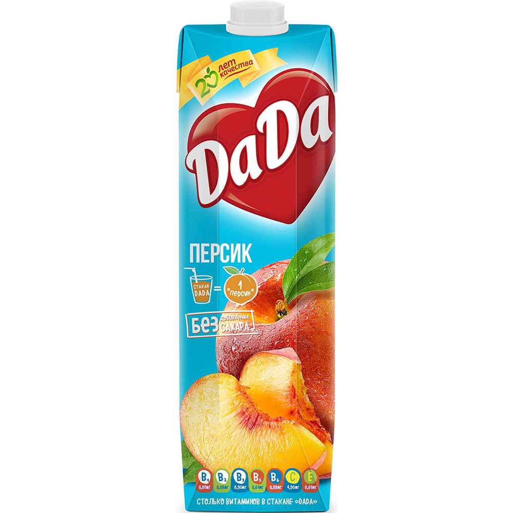 Освежающий и ароматный сок Dada Персик - идеальный выбор для тех, кто ценит натуральные вкусы и заботится о своем здоровье. Этот сок изготовлен из спелых персиков, что придает ему неповторимый вкус и аромат. Сочный и сладкий, он подарит вам заряд энергии на весь день. Вы можете насладиться этим соком в чистом виде или добавить его в коктейли, смузи или даже выпечку. Попробуйте приготовить освежающий персиковый мохито или добавьте сок в салат с фруктами для яркого вкуса лета. Не упустите возможность попробовать сок Dada Персик и насладиться его неповторимым вкусом уже сегодня!