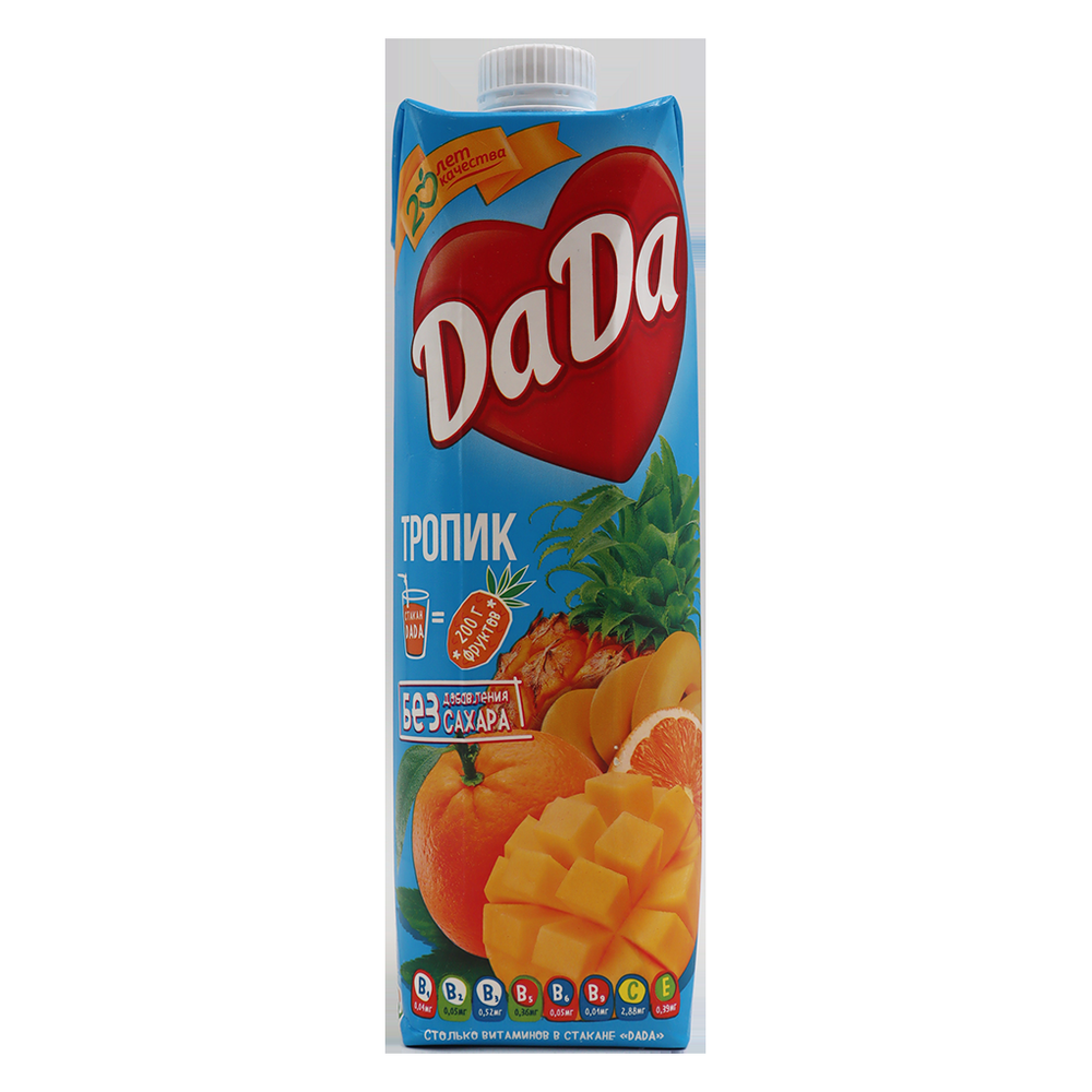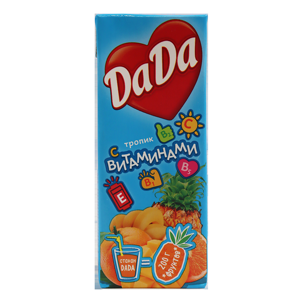 Освежающий и вкусный сок Dada Тропик - идеальный выбор для тех, кто ценит натуральные напитки. Этот сок сочетает в себе яркий вкус тропических фруктов и свежесть натуральных ингредиентов. Попробуйте его в чистом виде или добавьте в коктейли, смузи или десерты для уникального вкусового опыта. Приобретите сок Dada Тропик прямо сейчас и наслаждайтесь яркими вкусами тропиков каждый день!
