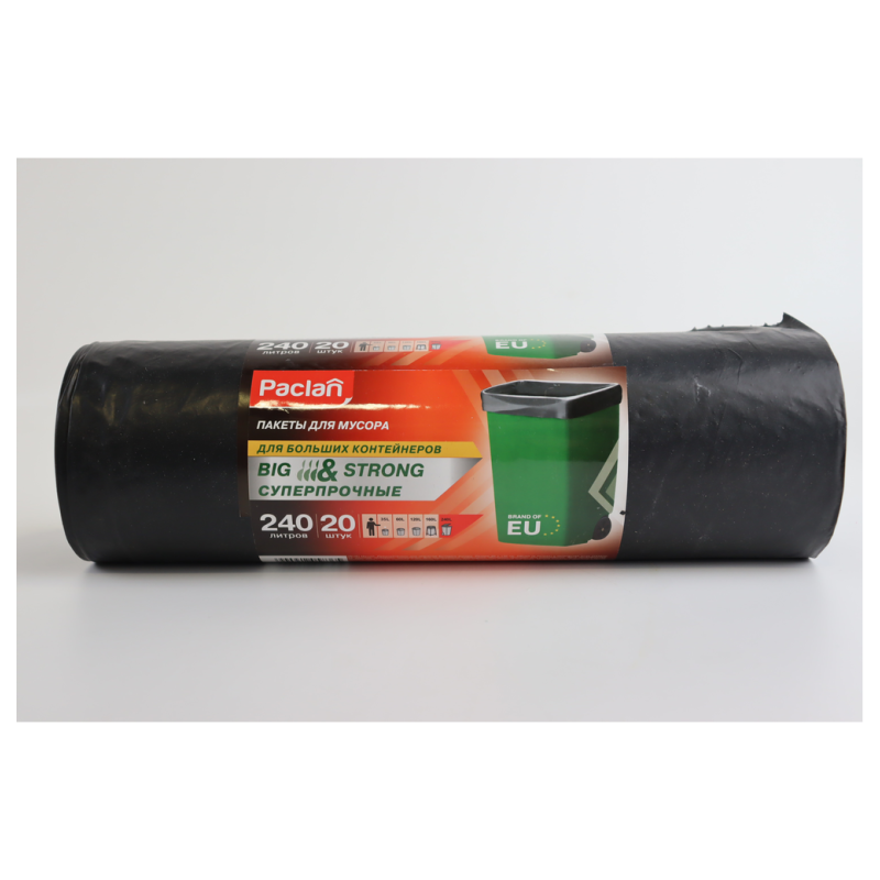 Пакеты для мусора PacLan Big&Strong имеют вместимость 240 л итров и размеры 90х140 см. В упаковке содержится 20 штук пакетов, каждый из которых имеет толщину 40 микрон. Эти пакеты обладают прочностью и надежностью, подходящими для сбора крупных объемов мусора, что делает их идеальным выбором для использования в больших помещениях, в том числе на производстве или в коммерческих учреждениях.
