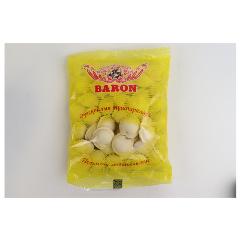 Пельмени Baron любительские (400 г): Пельмени любительские могут быть более стандартной разновидностью пельменей с начинкой из говядины, свинины или их комбинации, завернутых в тонкое тесто. Они часто имеют классический набор ингредиентов, таких как мука, мясо, лук, соль и перец.