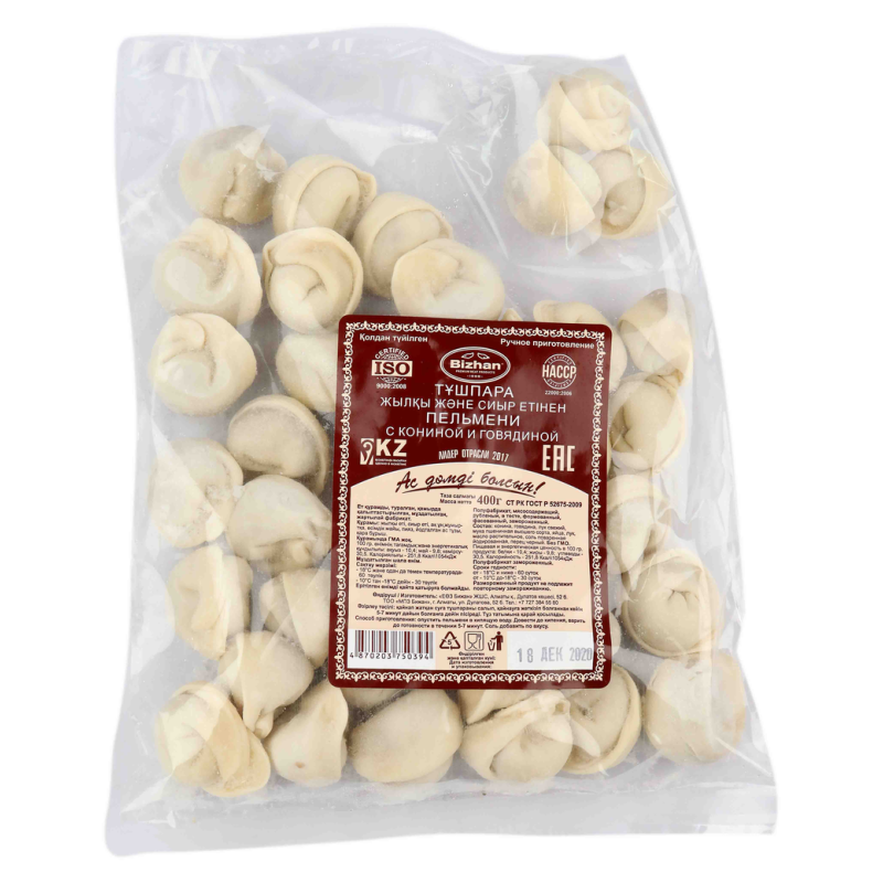 Пельмени «Бижан» с кониной и говядиной весом 400 г амм - это разнообразное блюдо, готовое к приготовлению. Внутри каждого пельменя скрыта начинка, состоящая из сочетания конины и говядины, что придает им особый вкус. Эти пельмени отлично подойдут для приготовления разнообразных блюд и обогатят ваш стол вкусными вариантами.