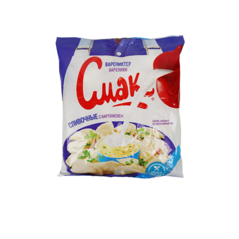 Вареники «Смак» славятся своим нежным и аппетитным вкусом. Этот вариант сливочных вареников с картофелем весит 350 г амм и поставляется в упаковке по 24 штуки. Их состав включает свежие сливки, картофель, муку высшего качества и специи, что делает их идеальным выбором для любителей вкусной и сытной еды.