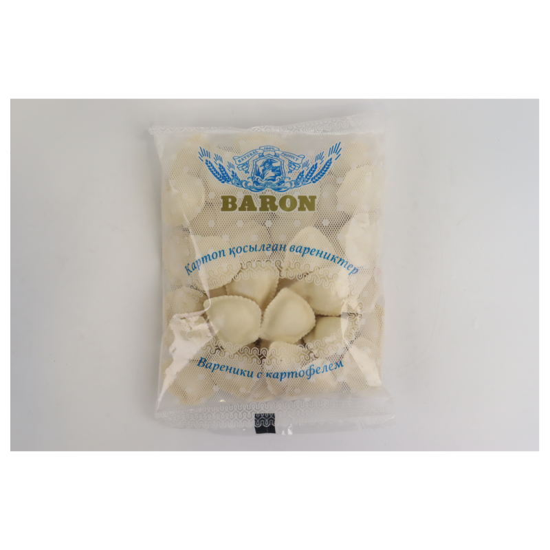 Вареники с картофелем Baron - это вкусное и питательное блюдо, которое приготовлено из нежного теста, наполненного сочным картофельным пюре. Они идеально подходят для быстрого и сытного обеда или ужина. Состав вареников включает муку, картофель, соль, растительное масло и специи.