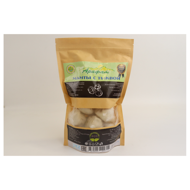 Манты «Арафат» с тыквой весом 800 г амм - это ароматное и вкусное блюдо, которое сочетает в себе мясо и нежную тыкву. В составе мантов могут присутствовать говядина, тыква, специи и другие ингредиенты, которые делают их вкусными и питательными.