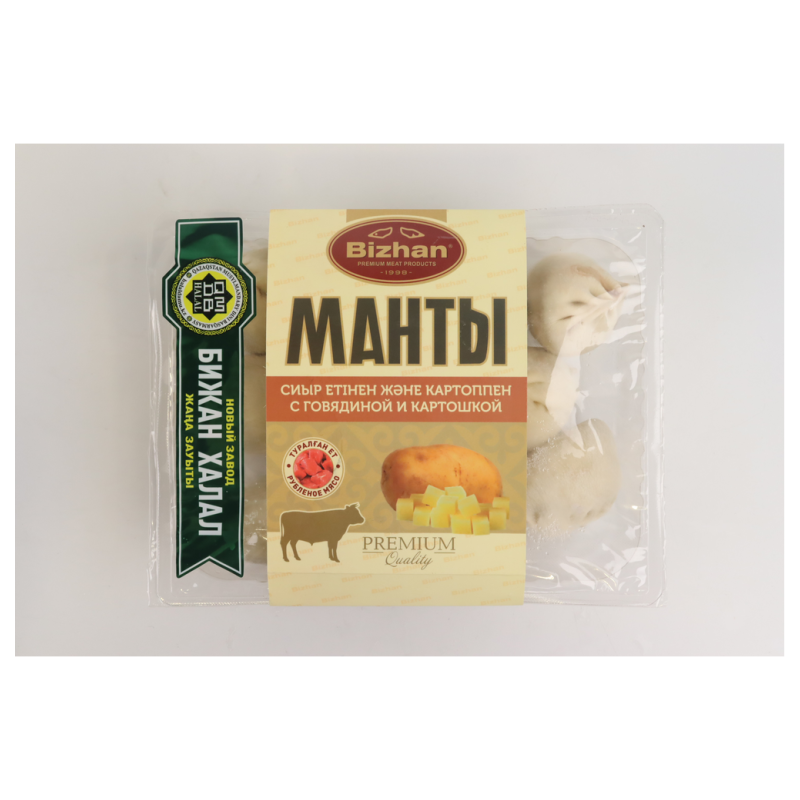 Манты Бижан с говядиной и картошкой (500 г) - это традиционное блюдо в новом исполнении. Они готовятся быстро и легко, предлагая вам нежный вкус говядины и картофеля. Состав: тесто, говядина и картофель.